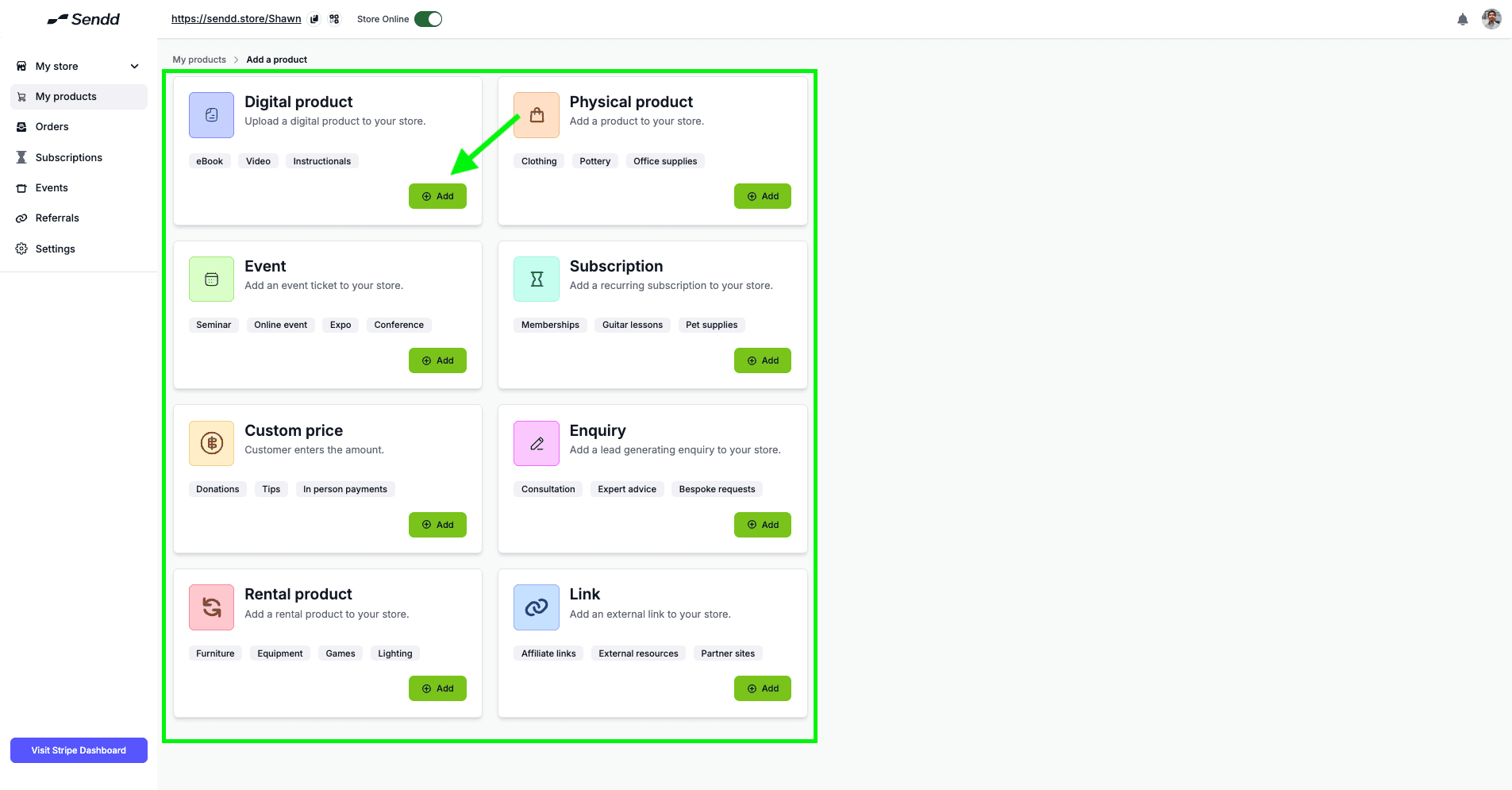 In the Add Products Section click on the Add button on Digital Products Box.