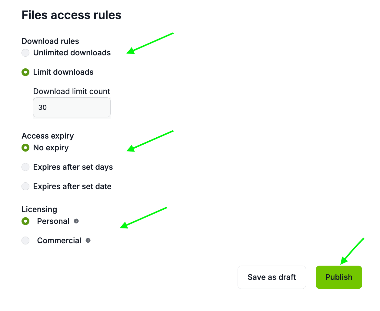 For Digital Products you have the option to set Download Rules, Access expiry and Licensing
