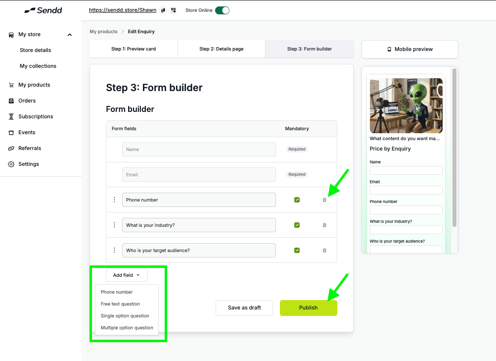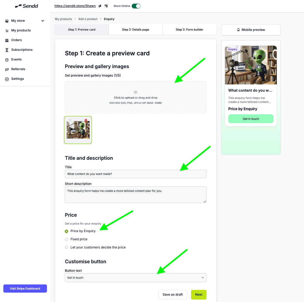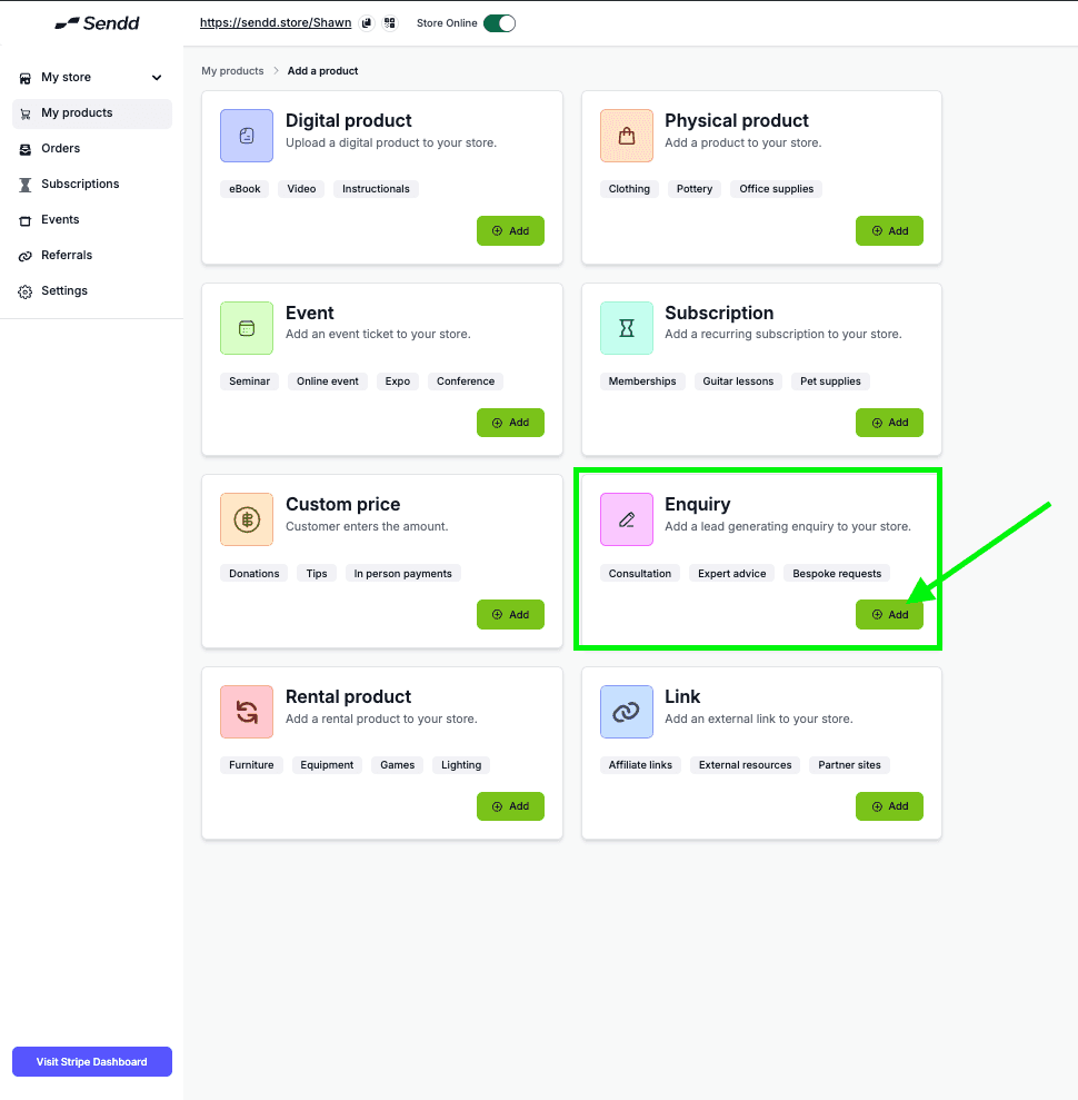 Enquiry Forms on Sendd are useful for businesses that don’t sell a fixed product or price upfront and instead need to collect customer details before providing a quote or custom solution. They allow potential buyers to submit requests directly through a Sendd store so the business owner can review the requirements and follow up.