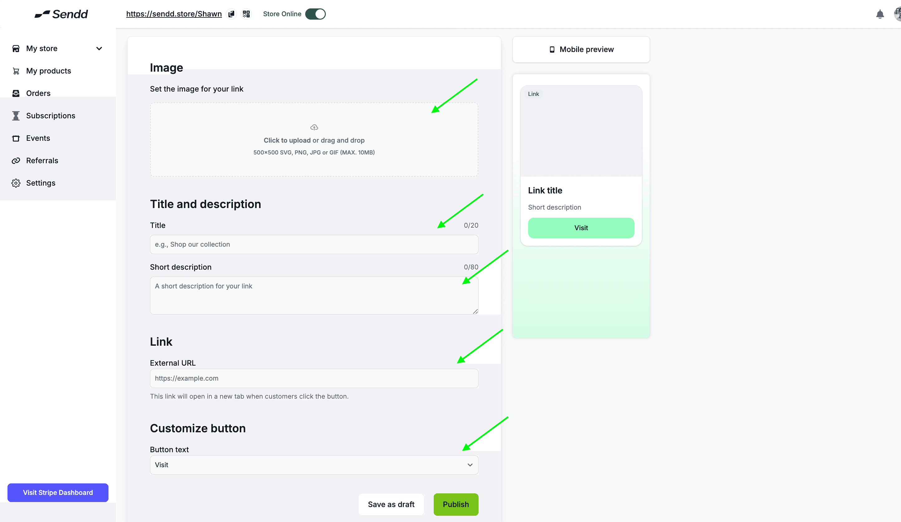 This article shows you how to add direct links that can be used to attach other resources to your Sendd store.