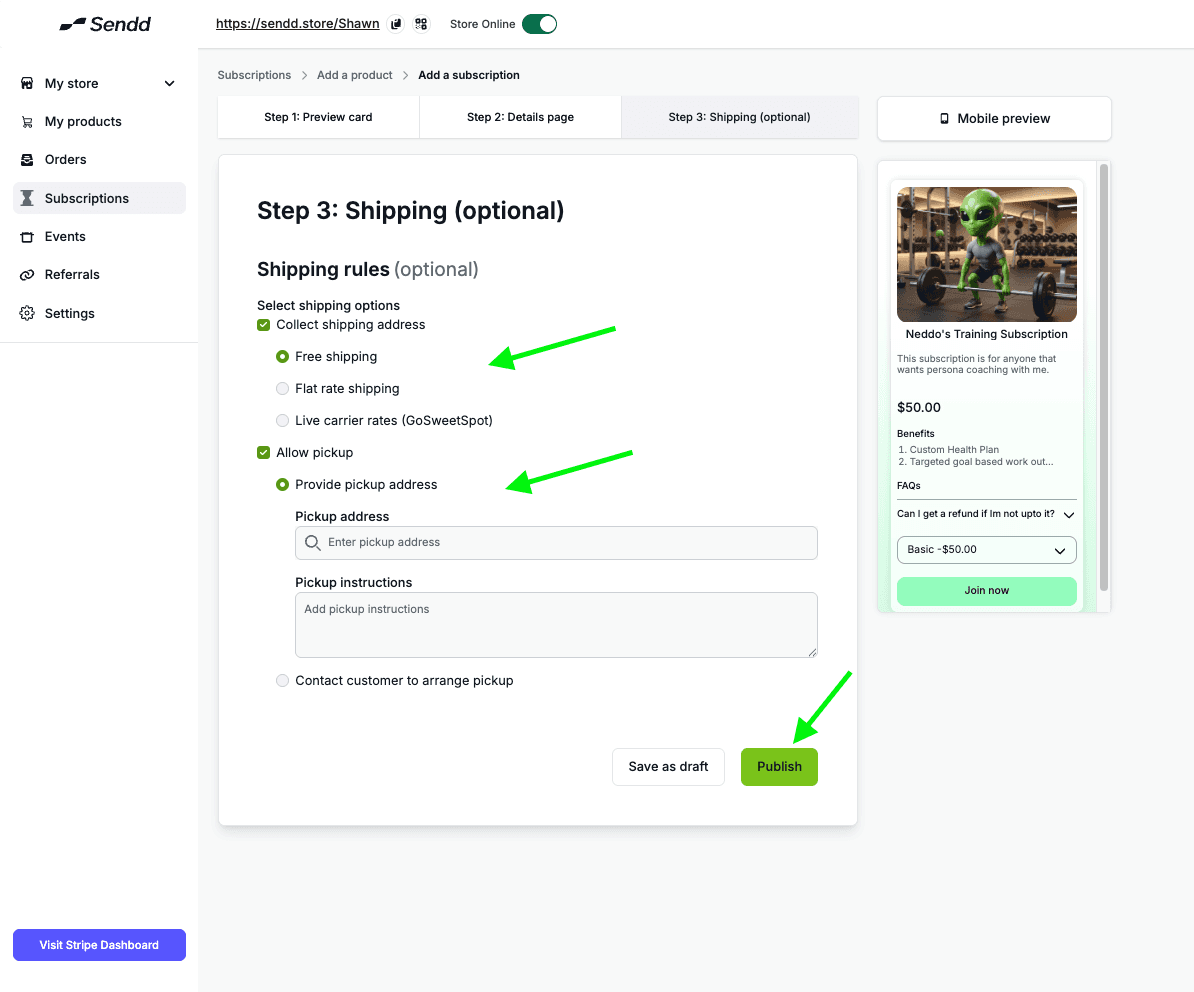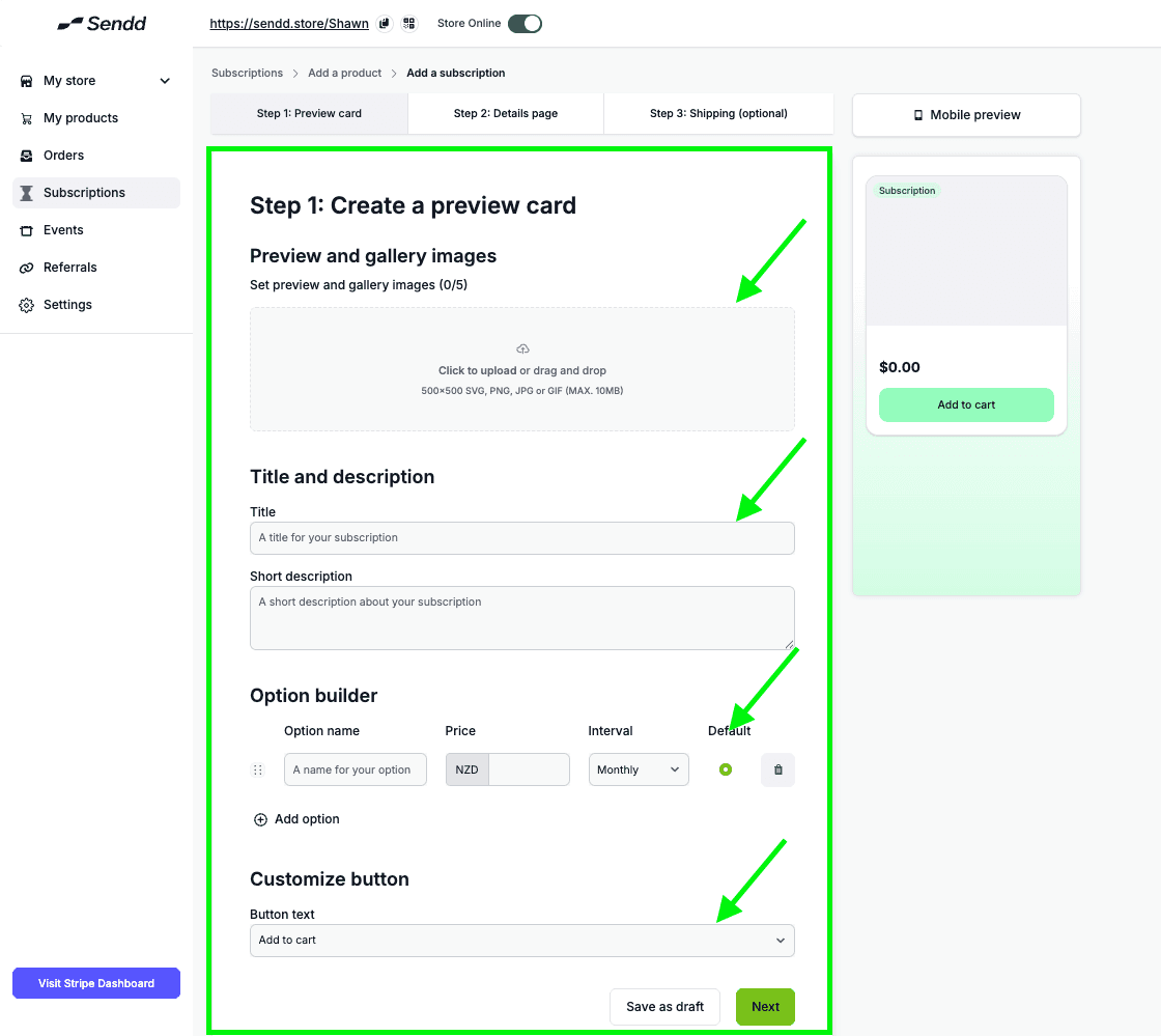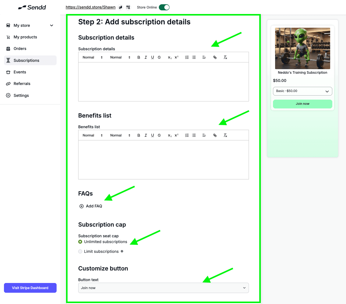 How to add subscriptions to your Sendd Store?