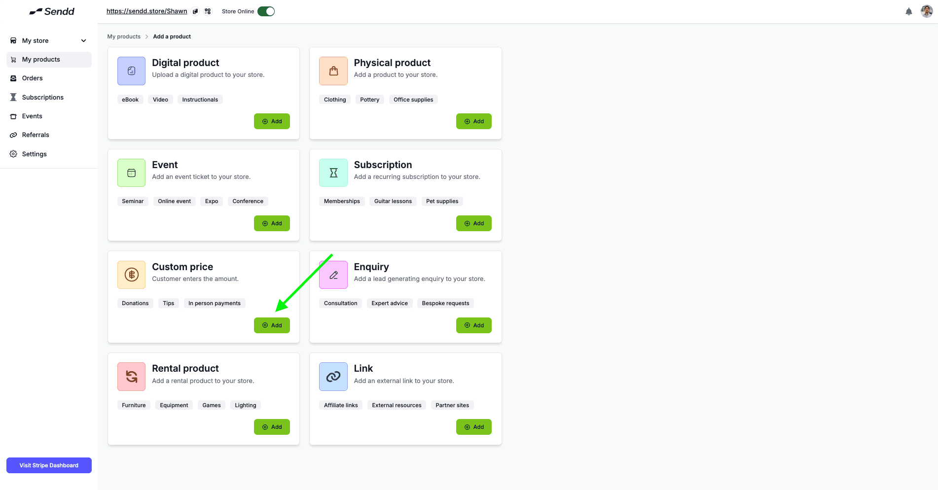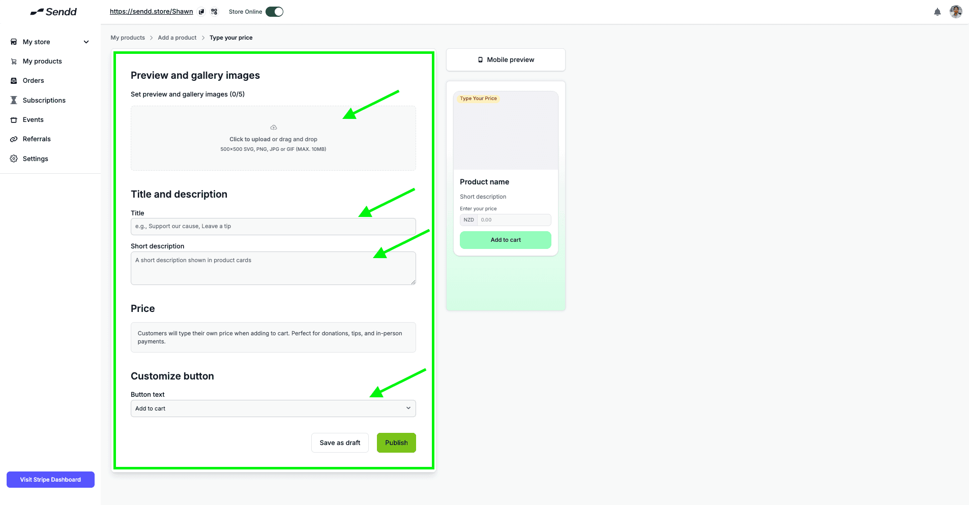 Click Publish and now you have your Custom Price Product on your Sendd Store.