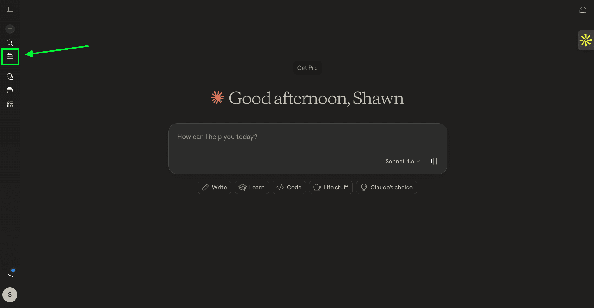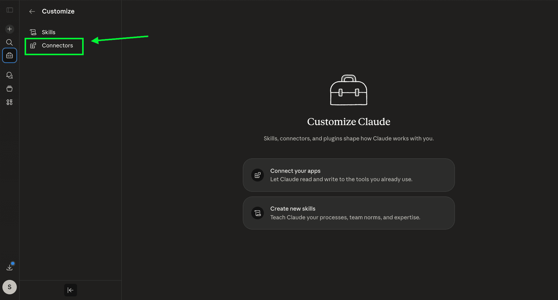 Step 2: Go to your Claude homepage, and click on Customize as shown below