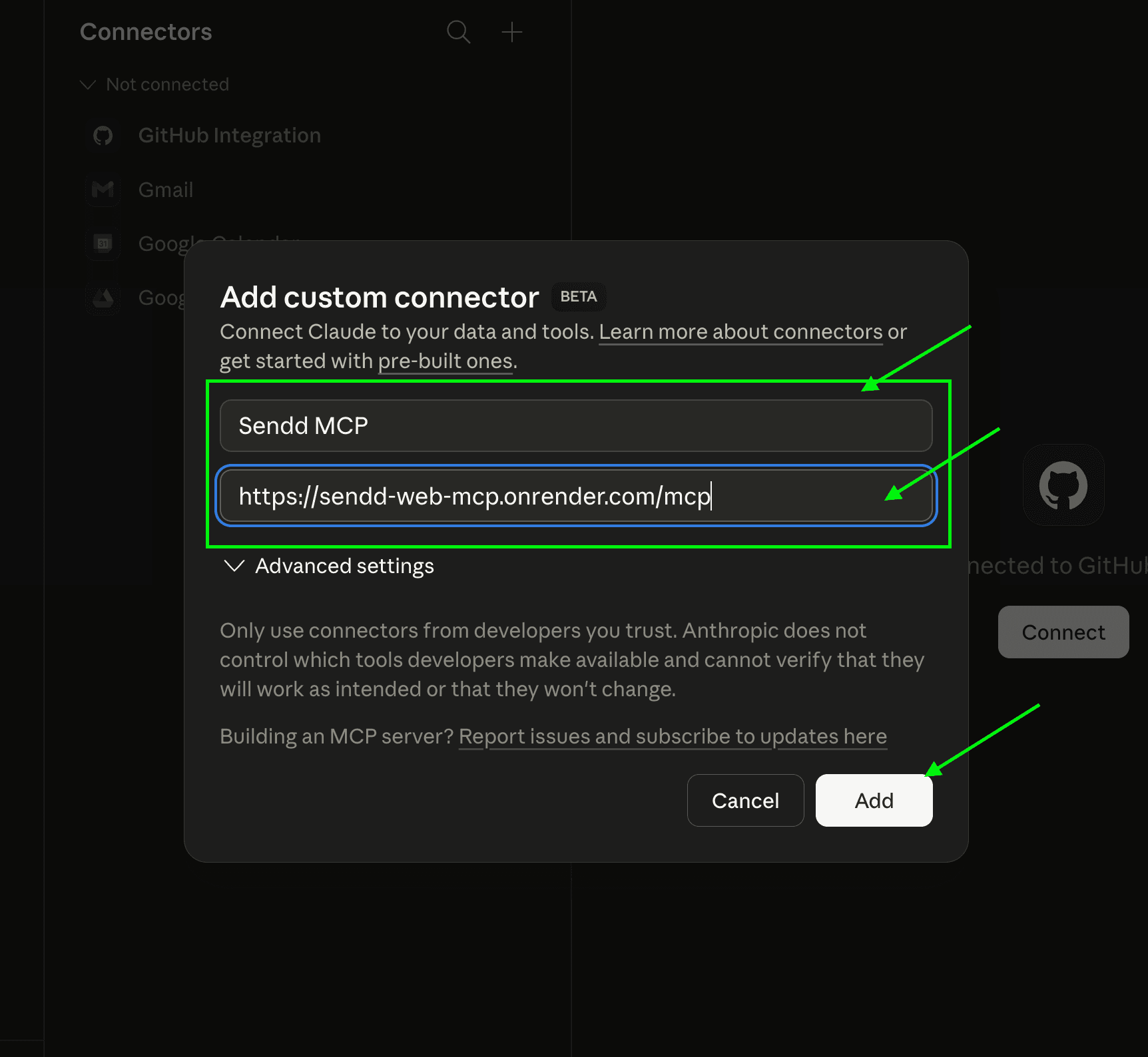 and for the Link past in: https://sendd-web-mcp.onrender.com/mcp