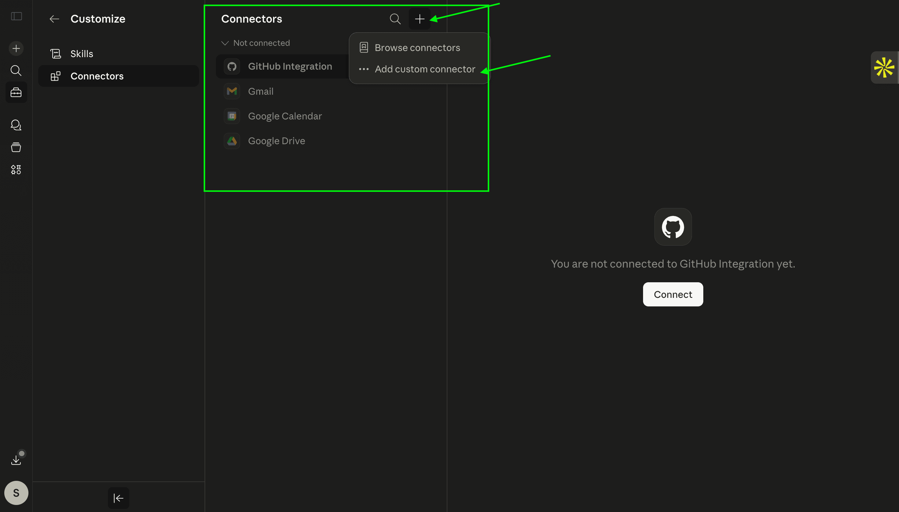 Step 4: Click on the "+" button and click on Add Custom Connector