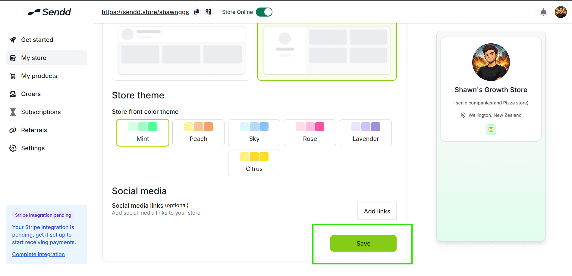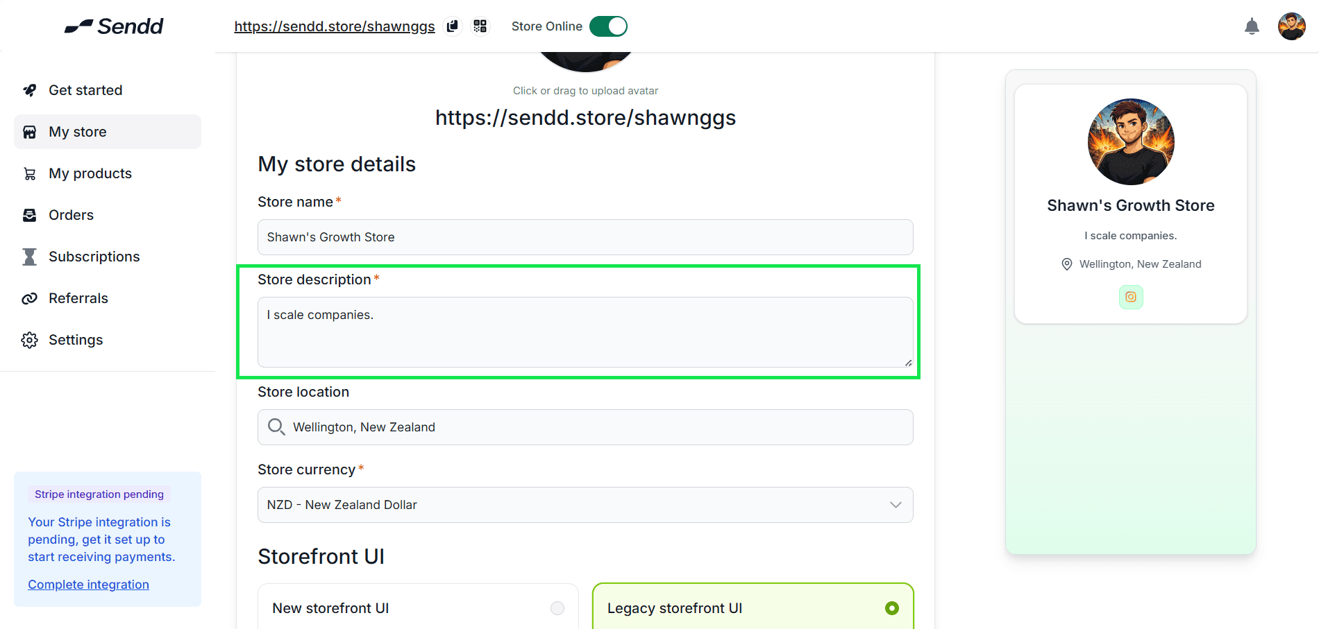 Got to My Store within your Sendd and click on the Text field under Store Description.