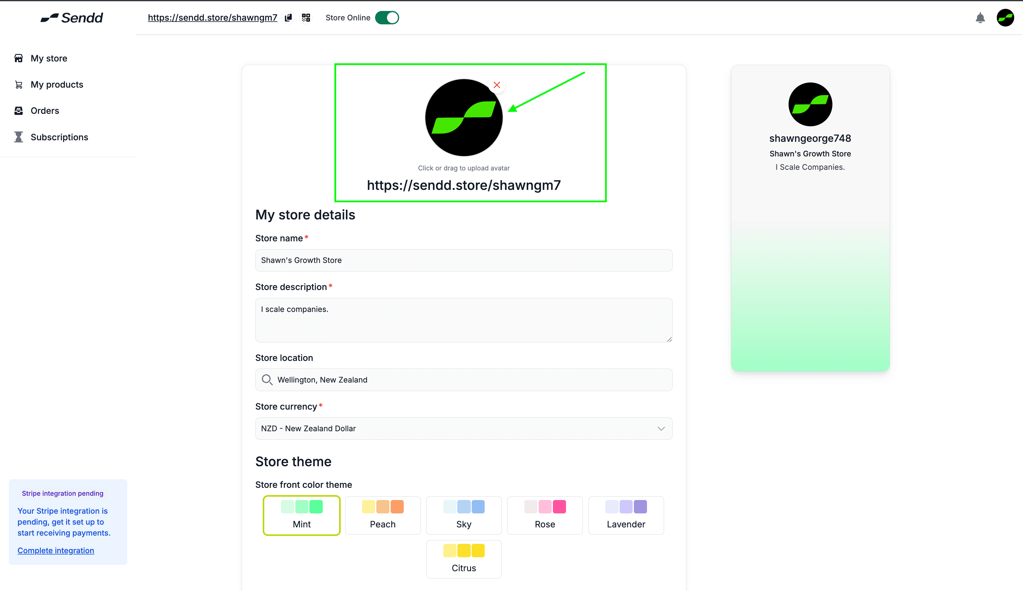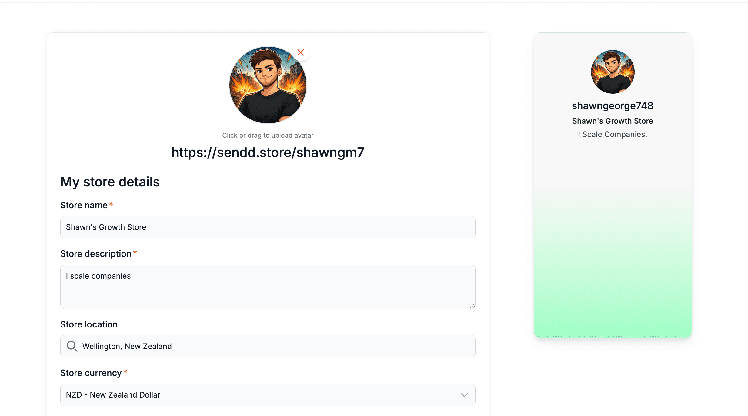 Don't forget to click on Save so that the avatar uploads on your Sendd Store